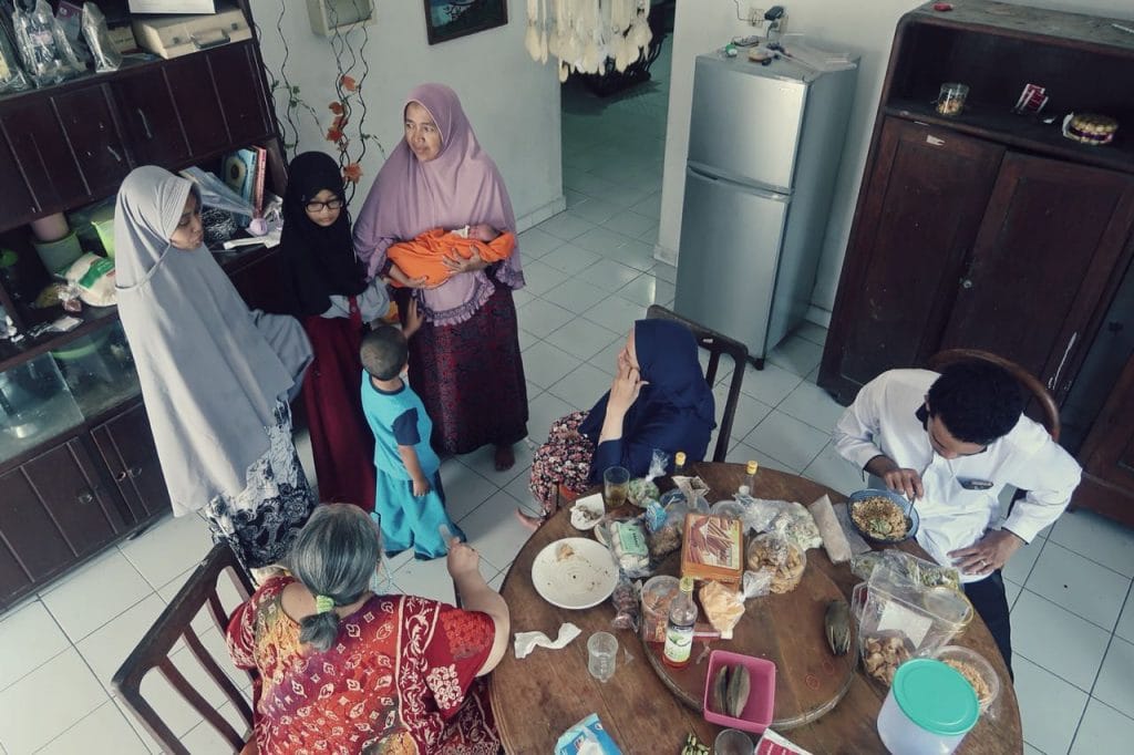 2 adik ipar perempuan saya masuk dan bantu-bantu istri. Ibu saya masih belum berani, agak takut.